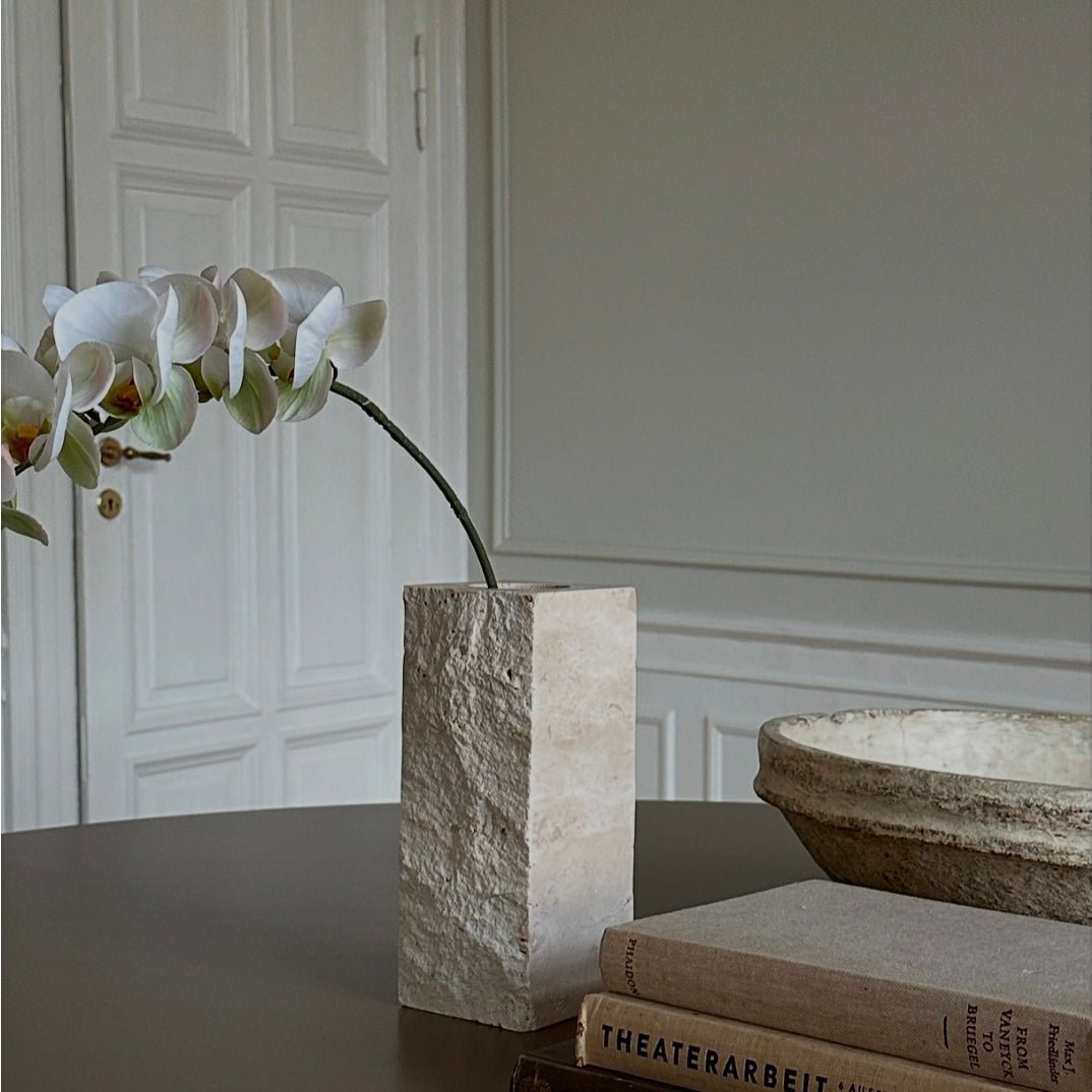 Vases in chrome and travertine, as a statement piece or with your favorite artificial flowers 🤍