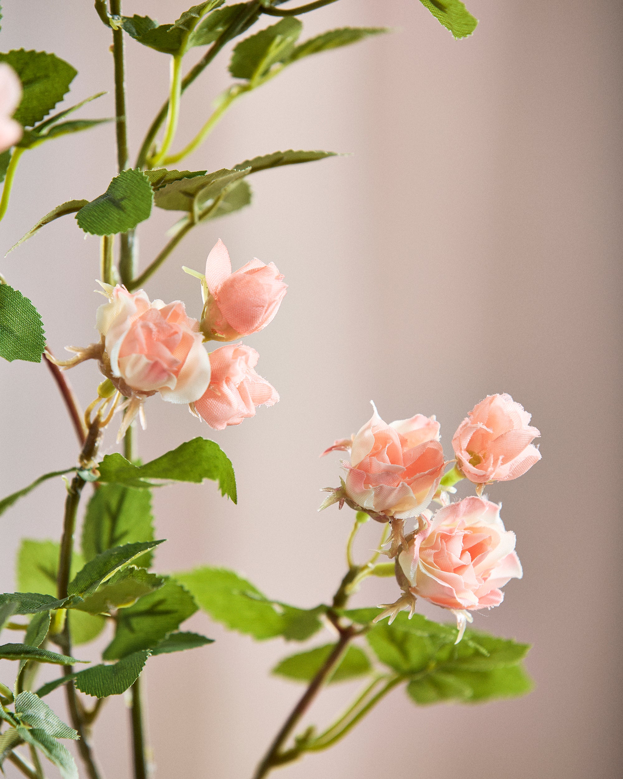 A stem that feels as if it were cut straight from a romantic garden rosebush. With its 18 delicate heads, it brings the essence of summer and freshly cut roses – light, natural, and full of charm. Perfect on its own in a vase or as a sweet detail in a bouquet.