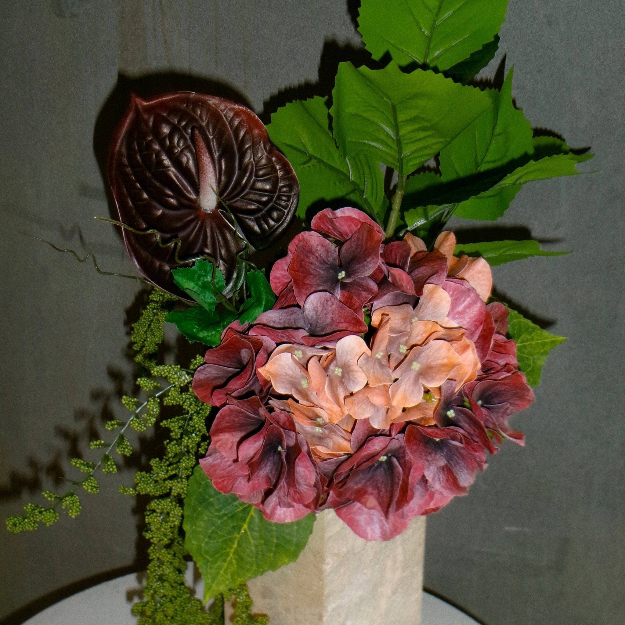 Burgundy Rouge is a bouquet that exudes depth and sophistication. The rich burgundy hues, combined with subtle green details, create a play of colors that captures the eye. The dark, warm tones of the hydrangeas blend beautifully with the elegant amaranthus, giving the bouquet a sophisticated and timeless expression.