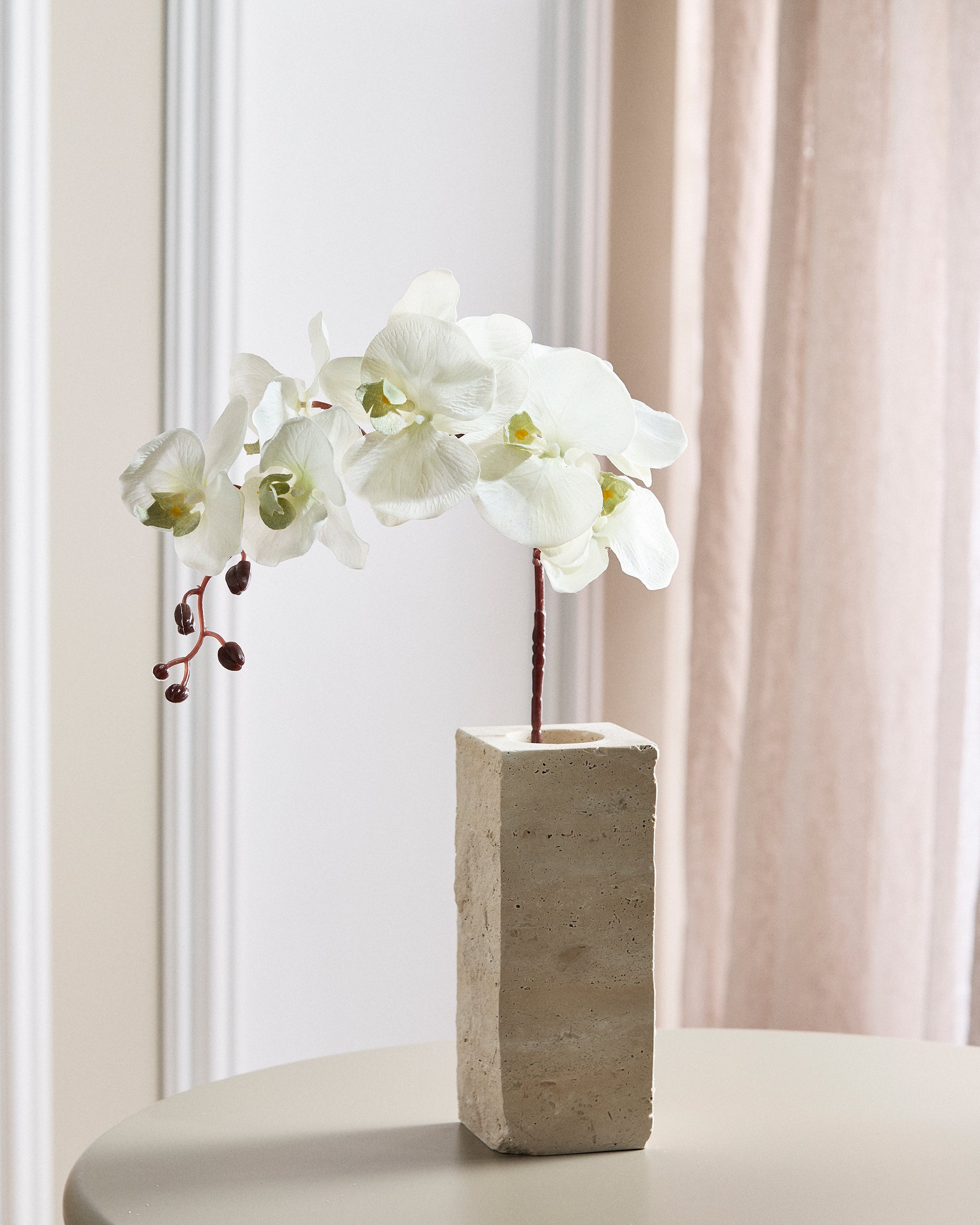 The 9-Head Artificial Butterfly Orchid is a meticulously crafted faux flower that captures the elegance of real orchids. Standing at 96 cm tall, it features nine latex-coated flowers on a plastic stem reinforced with an iron wire core, allowing for easy trimming and flexible positioning to suit your decorative needs.