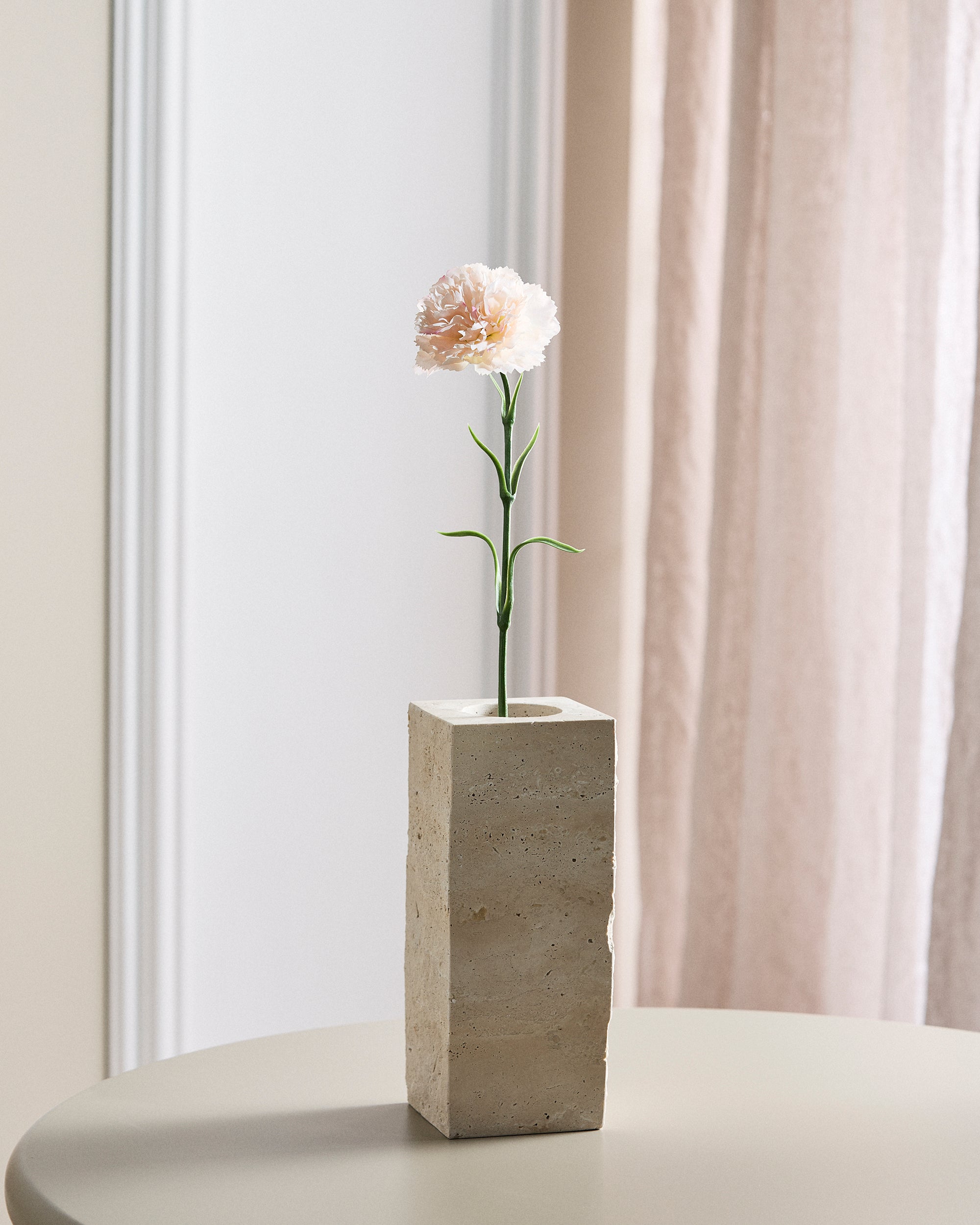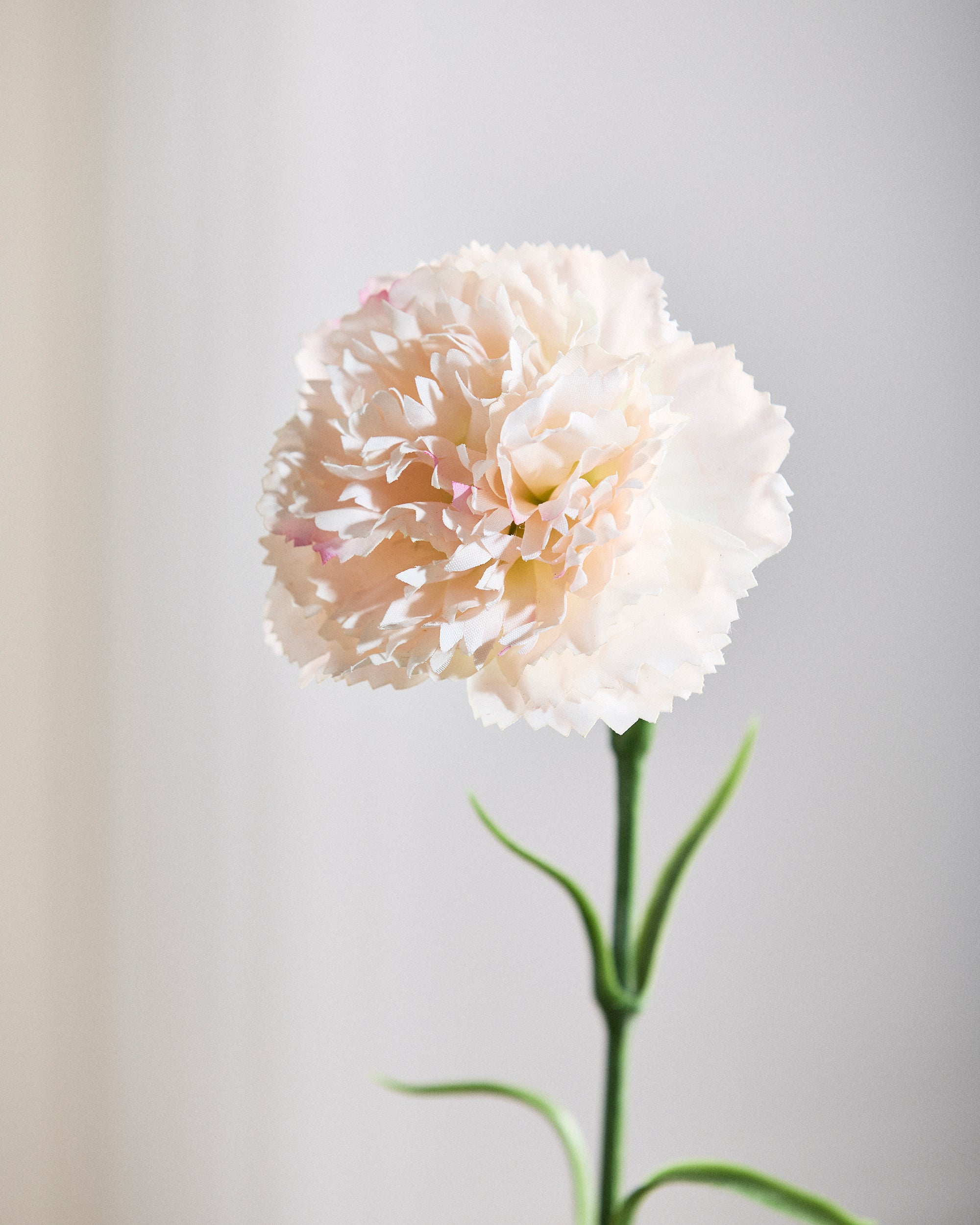 Each carnation is handmade in silk with a soft latex coating, giving the petals a realistic texture and feel. The ruffled, layered petals in a subtle champagne color create a full and natural look, perfectly suited for both classic and modern arrangements.