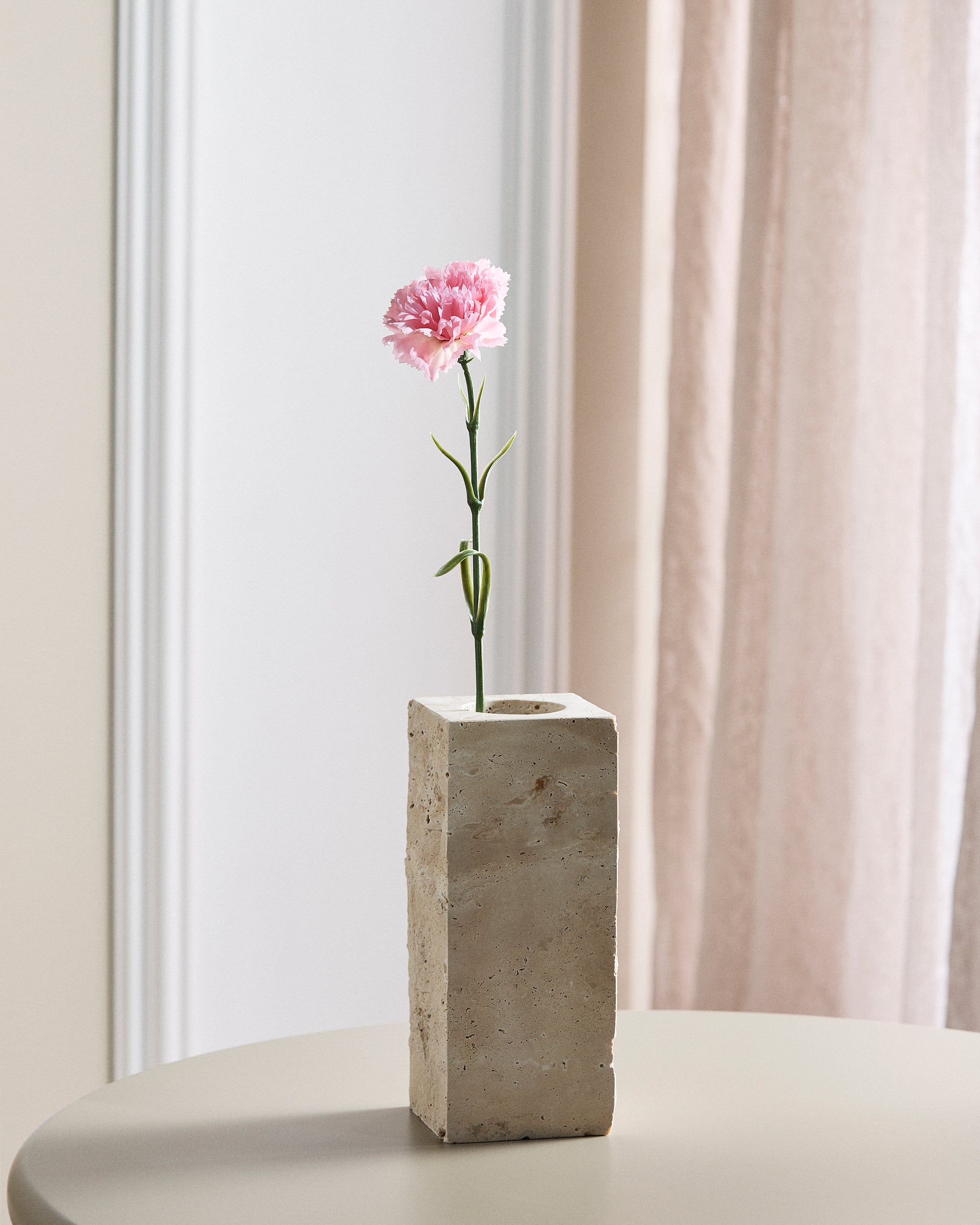 Each carnation is handmade in silk with a soft latex coating, giving the petals a realistic texture and feel. The ruffled, layered petals in a delicate light pink create a full and natural look, perfectly suited for both classic and modern arrangements.