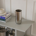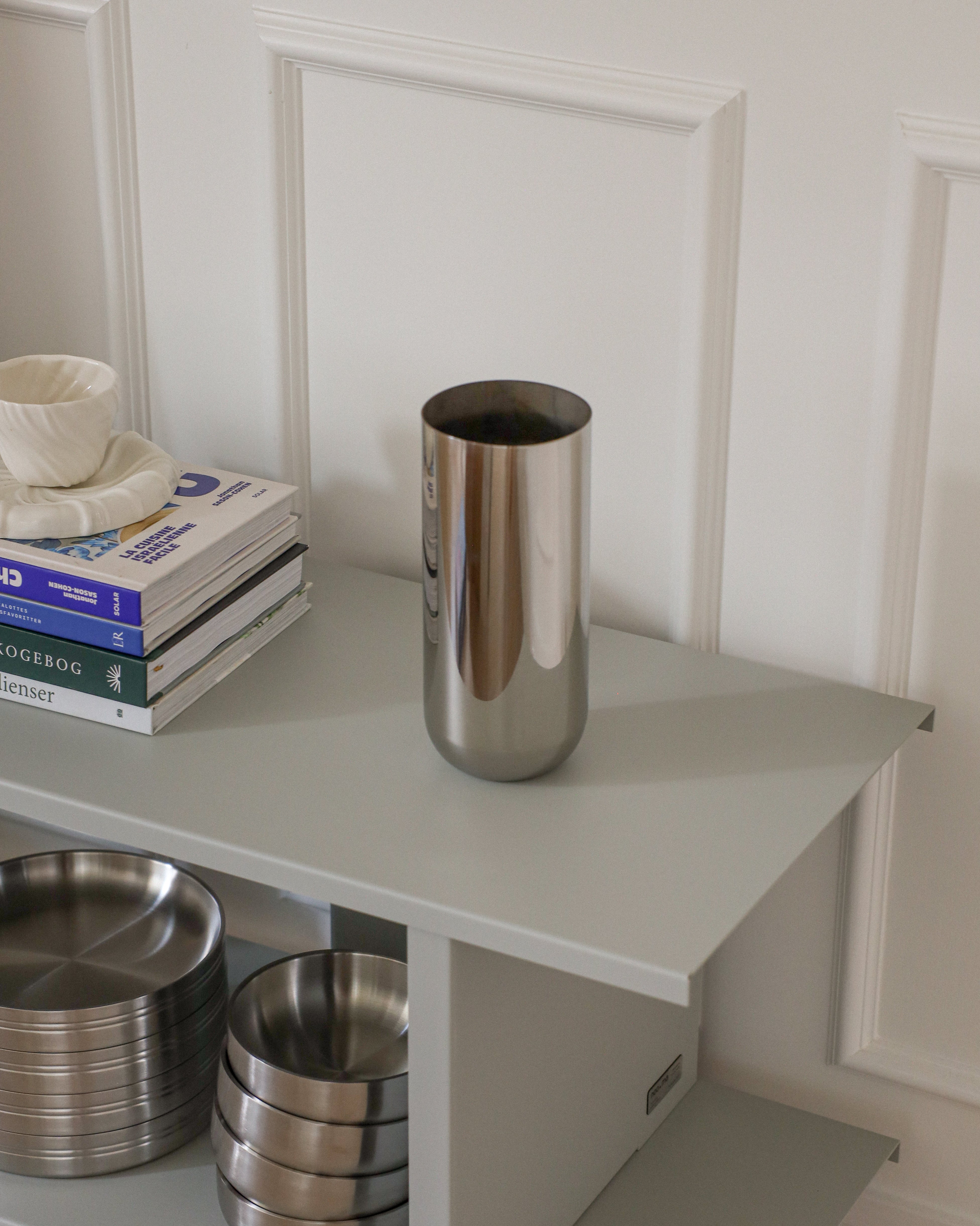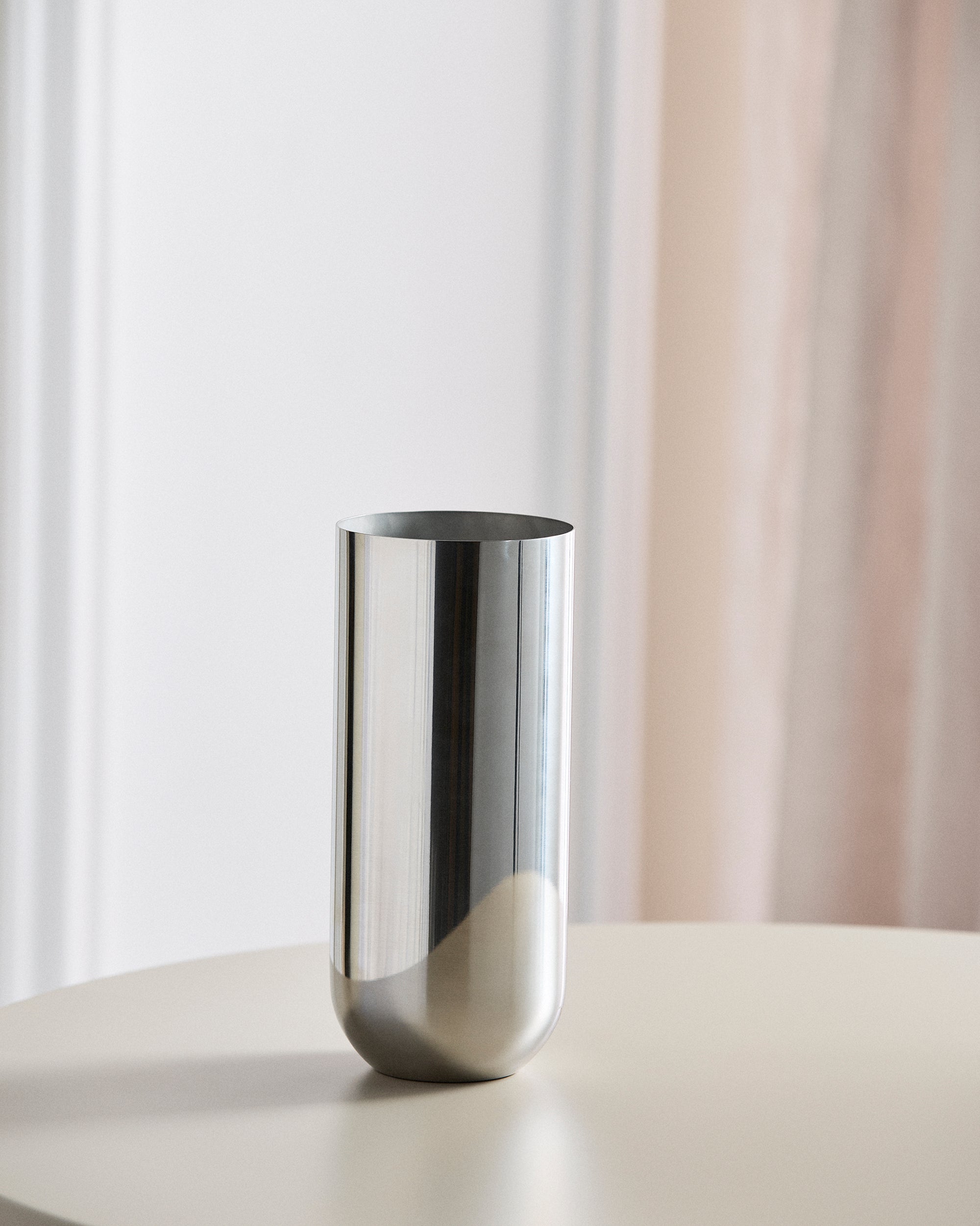 Our Chrome Vase in Stainless Steel is the perfect vase for everyday use. Its clean lines and simple appearance allow the flowers to shine, while it also stands alone as a statement piece.