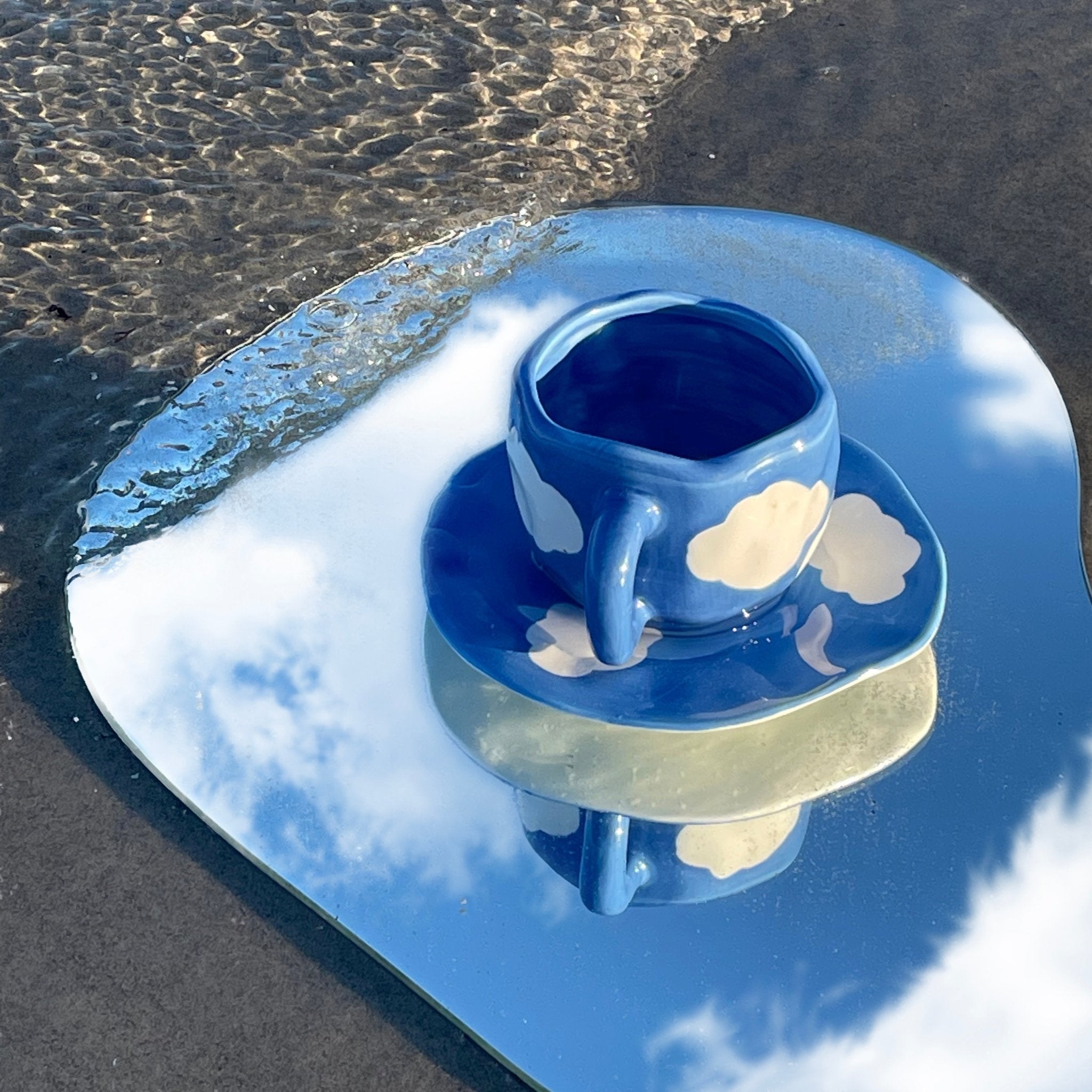 Our Japanese-inspired Cloud Mug is hand-painted and created to add a cheerful touch to your everyday life. Whether it's for your much-needed morning coffee or afternoon pick-me-up in the sun, the cloud mug with its soft, swirling design and soothing colors is a perfect addition to your coffee cup collection. As the mug is handmade, there may be slight variations in appearance, adding to its unique character.