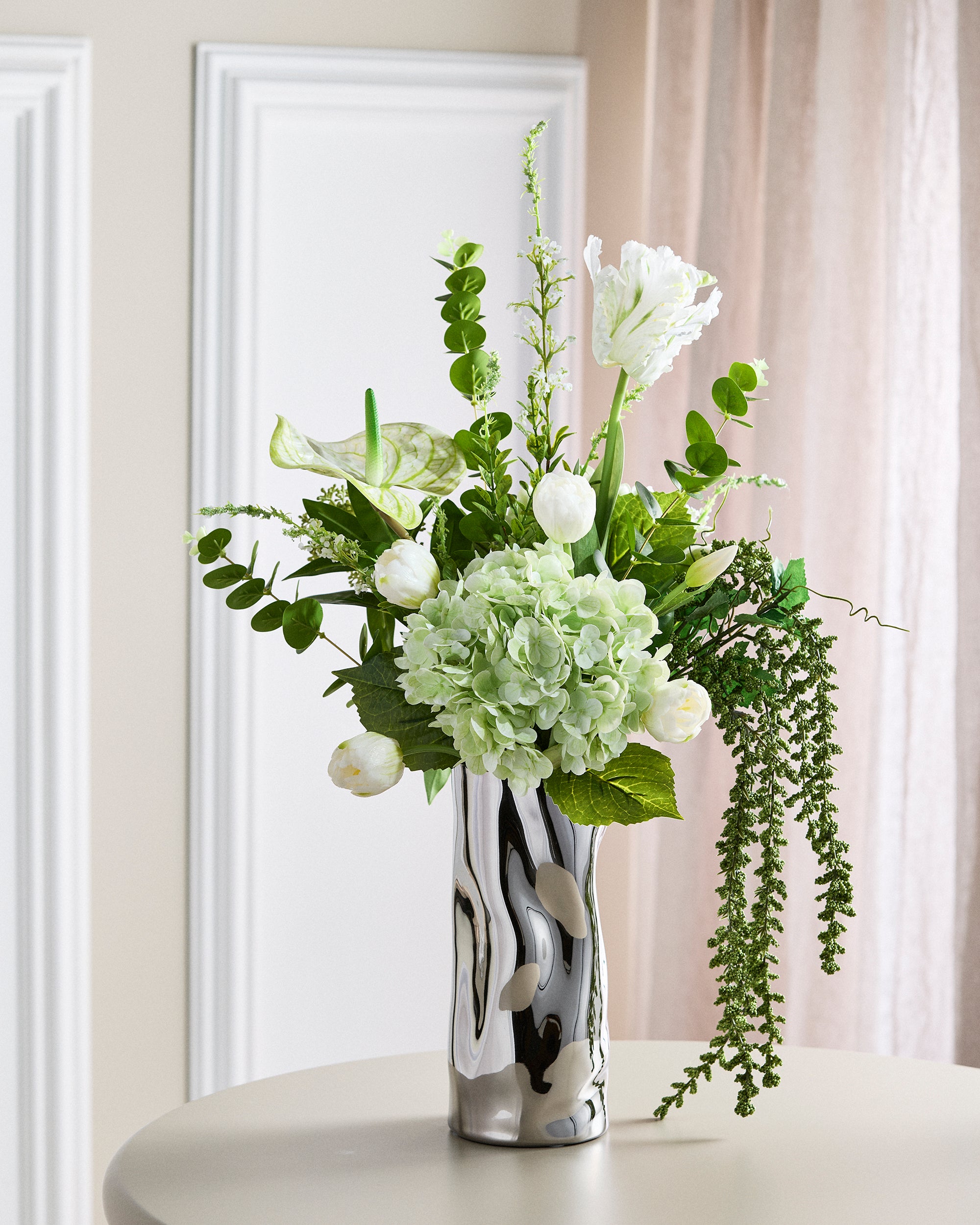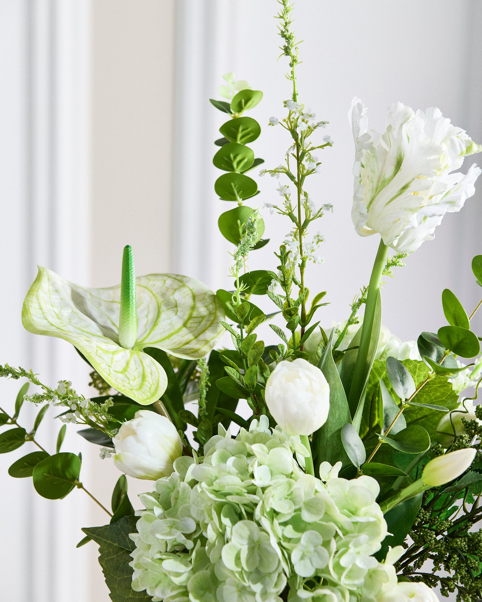 Cool Cucumber is a fresh and sophisticated bouquet in cool green and white shades. It has a clean and modern look, perfect for those who love calm and balance in their home. Created for you who want a bouquet with eternal freshness and subtle luxury in your décor.
