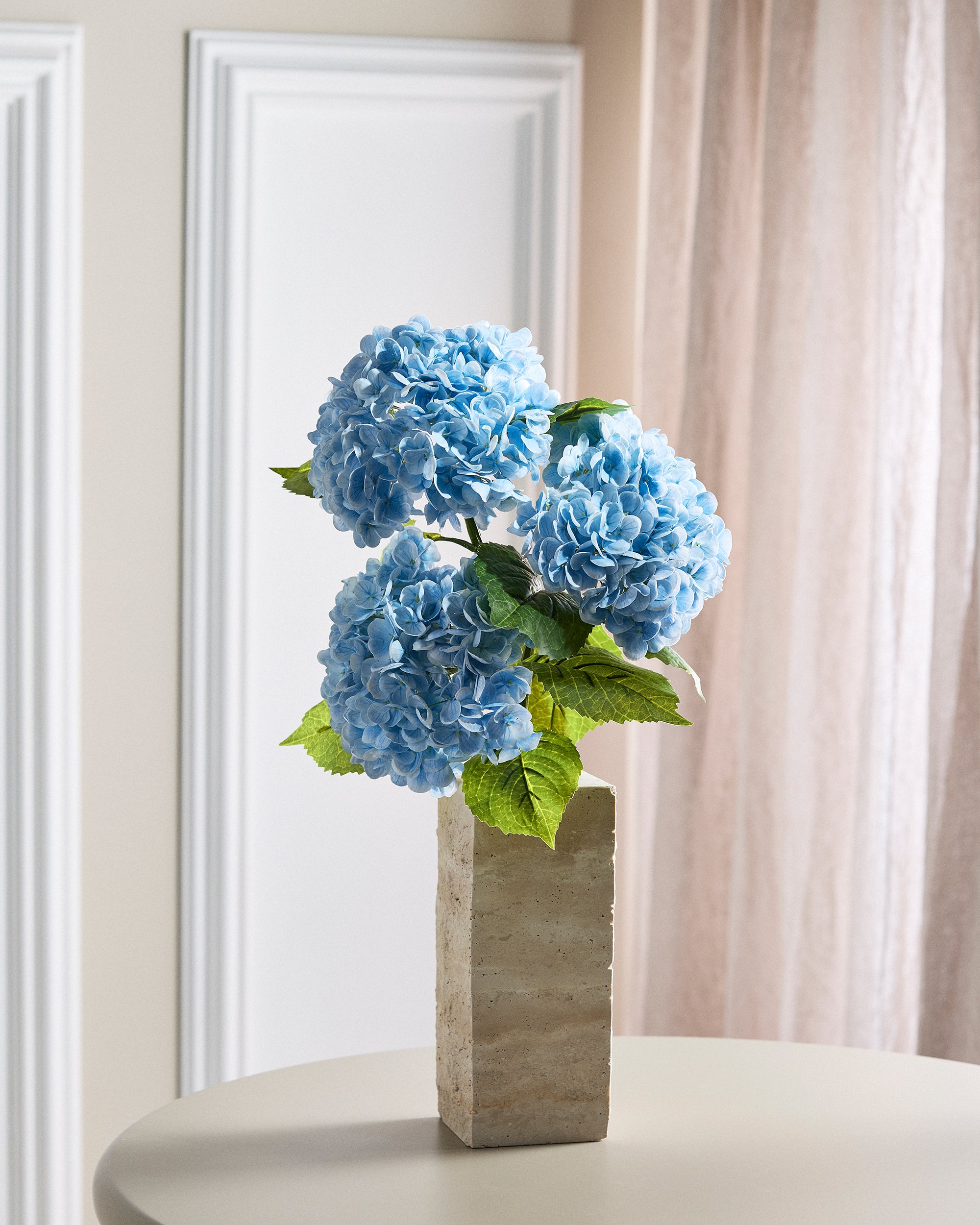 Our stunning bouquet consists of three lifelike hydrangeas that impress with their authentic textures and vibrant leaves. These flowers add a tactile dimension with their lifelike structure and exude timeless charm, symbolizing beauty and abundance.