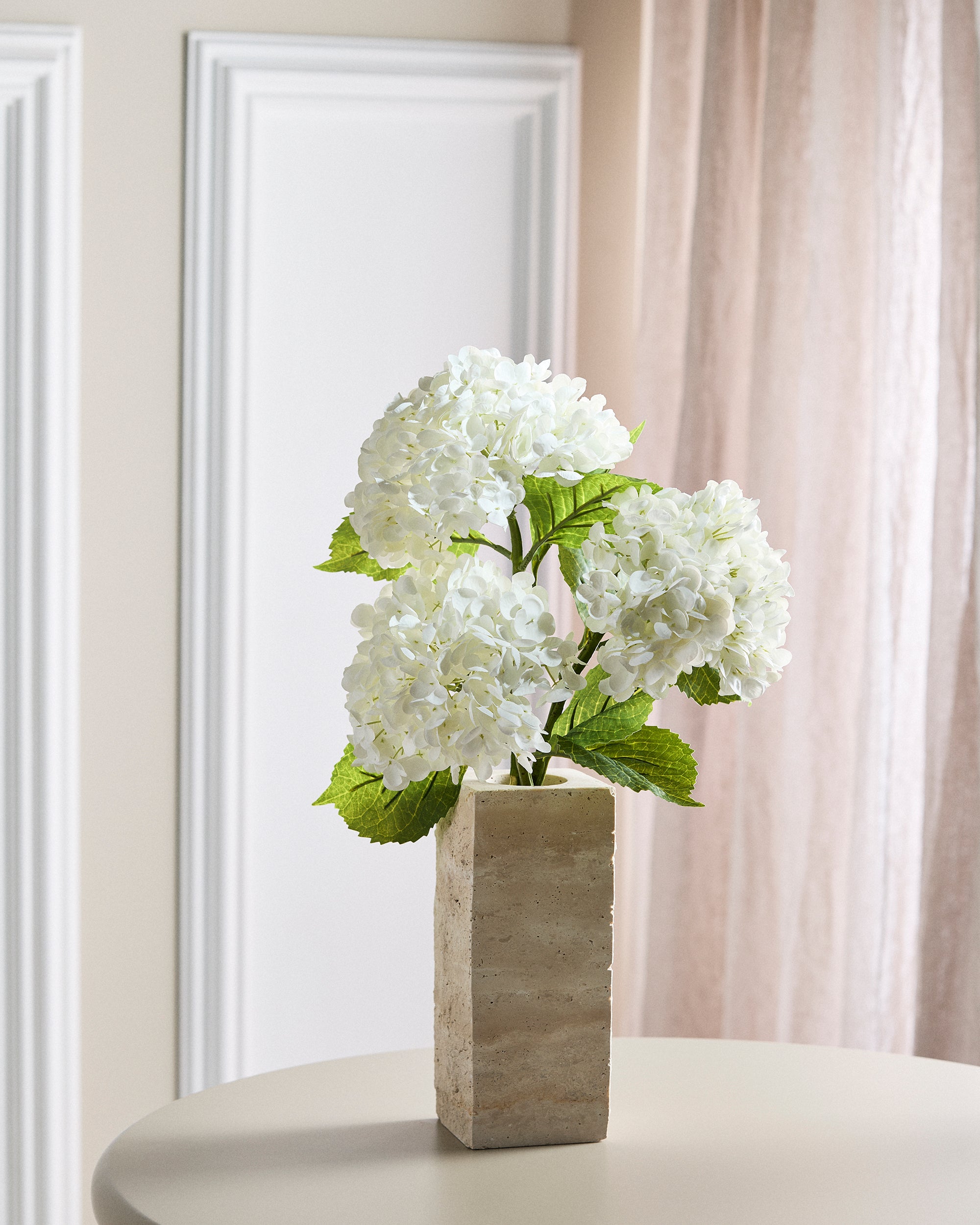 Our stunning bouquet consists of three lifelike hydrangeas that impress with their authentic textures and vibrant leaves. These flowers add a tactile dimension with their lifelike structure and exude timeless charm, symbolizing beauty and abundance.