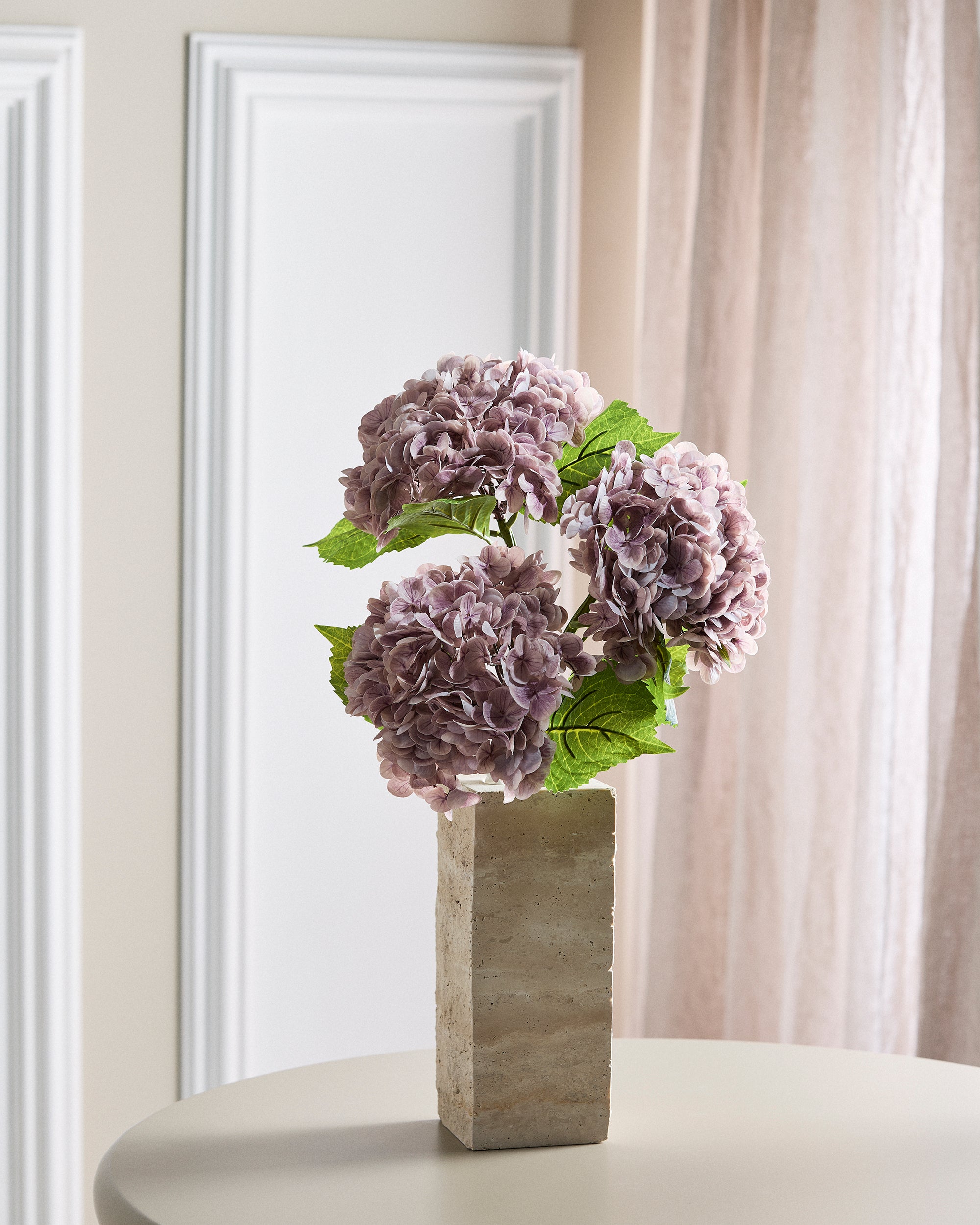 Our stunning bouquet consists of three lifelike hydrangeas that impress with their authentic textures and vibrant leaves. These flowers add a tactile dimension with their lifelike structure and exude timeless charm, symbolizing beauty and abundance.