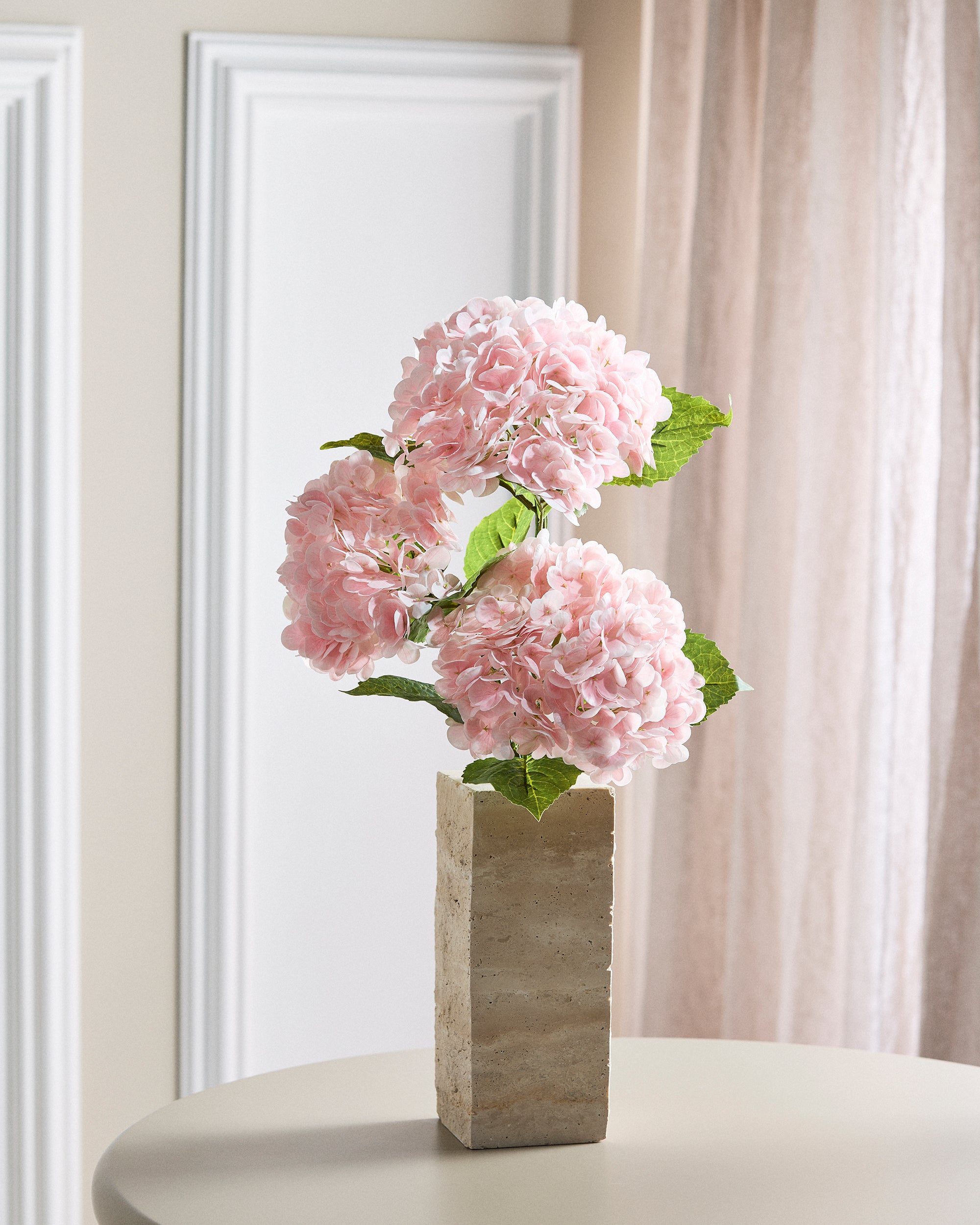 Our stunning bouquet consists of three lifelike hydrangeas that impress with their authentic textures and vibrant leaves. These flowers add a tactile dimension with their lifelike structure and exude timeless charm, symbolizing beauty and abundance.