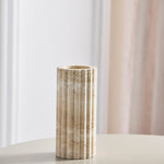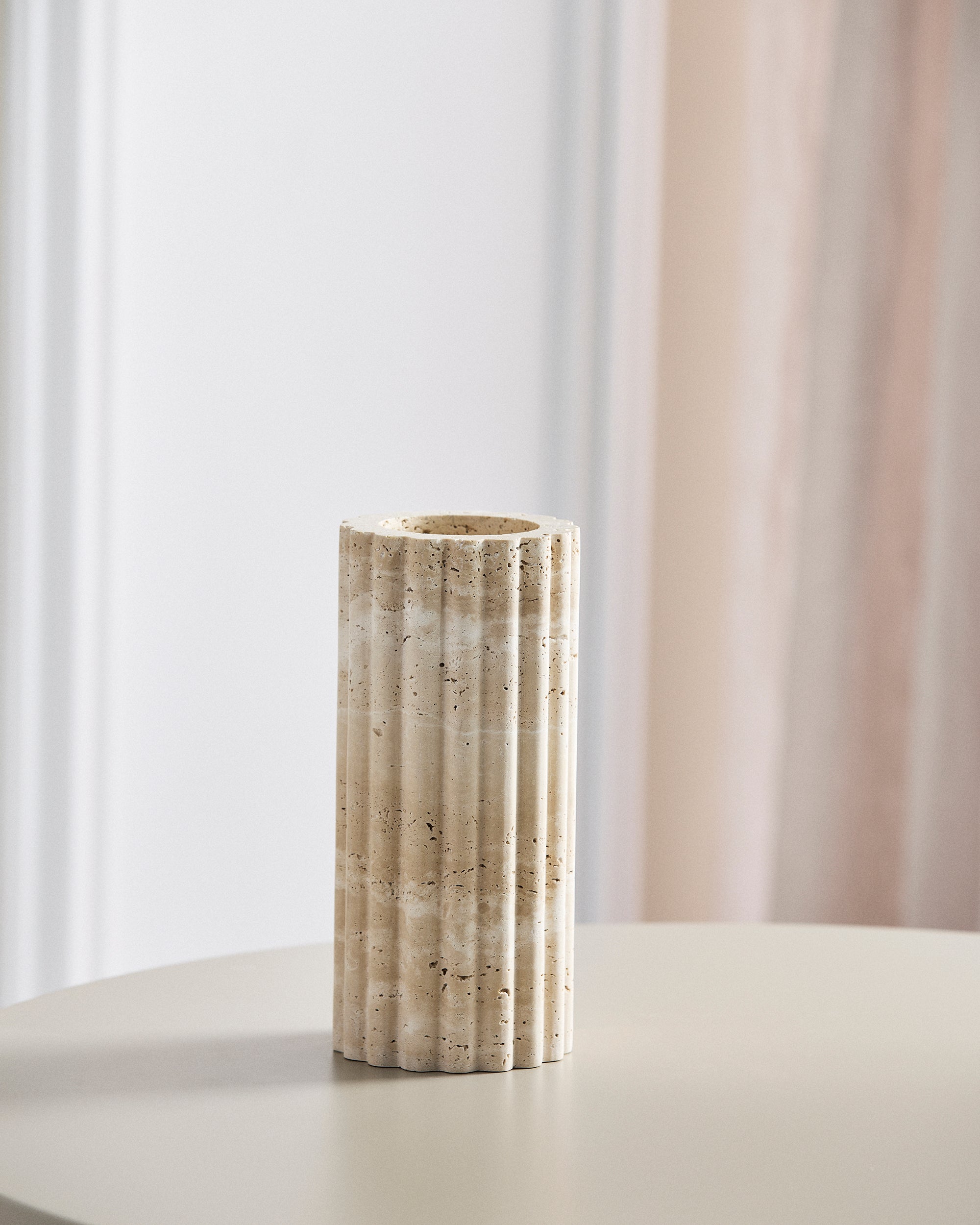 Our exclusive Kumo Vase is crafted from natural, raw travertine. Its wavy surface creates a beautiful contrast between the raw and feminine look.
