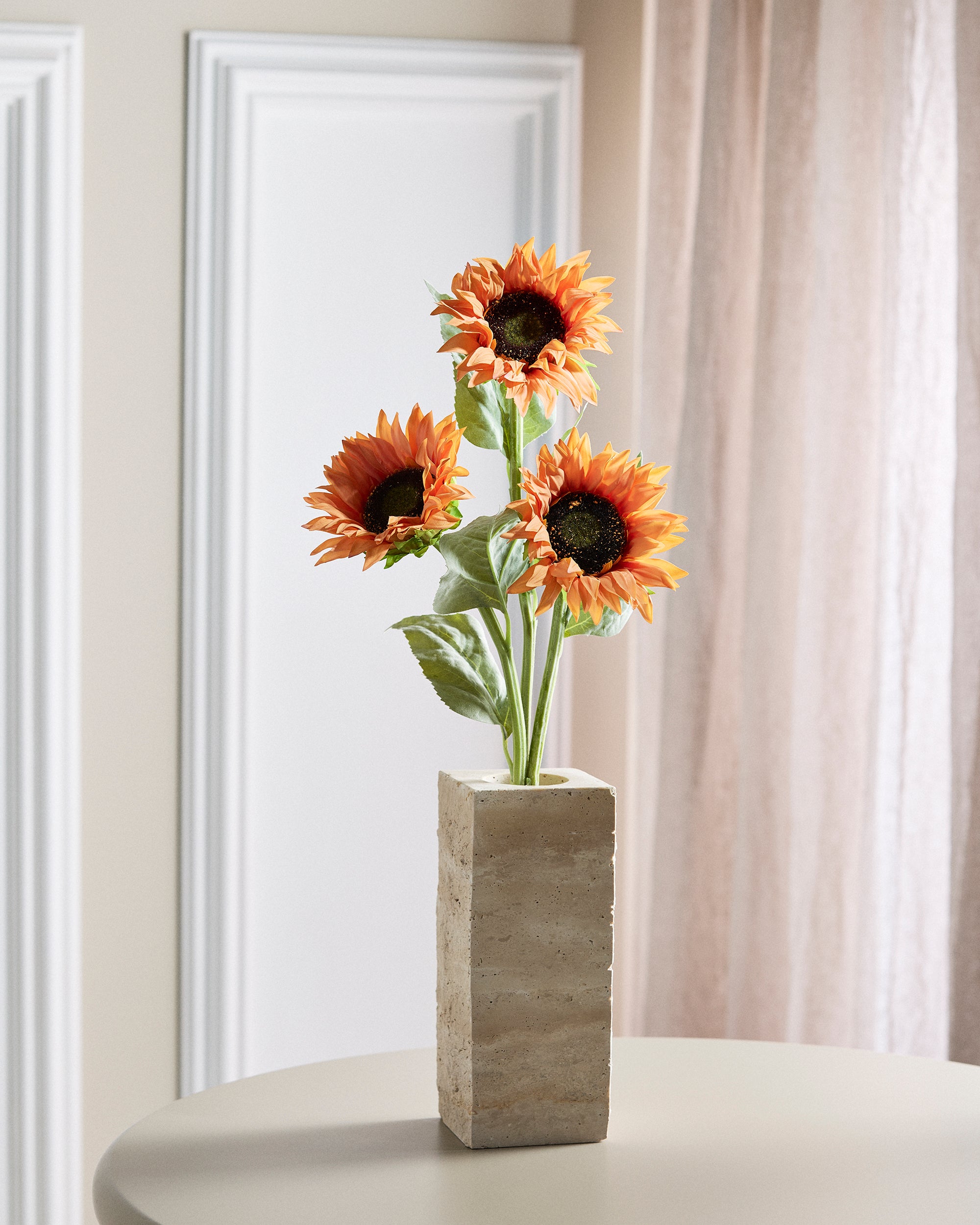 A full mix of lifelike sunflowers in burnt orange tones. Silky-soft petals and fine latex details – almost like freshly picked.