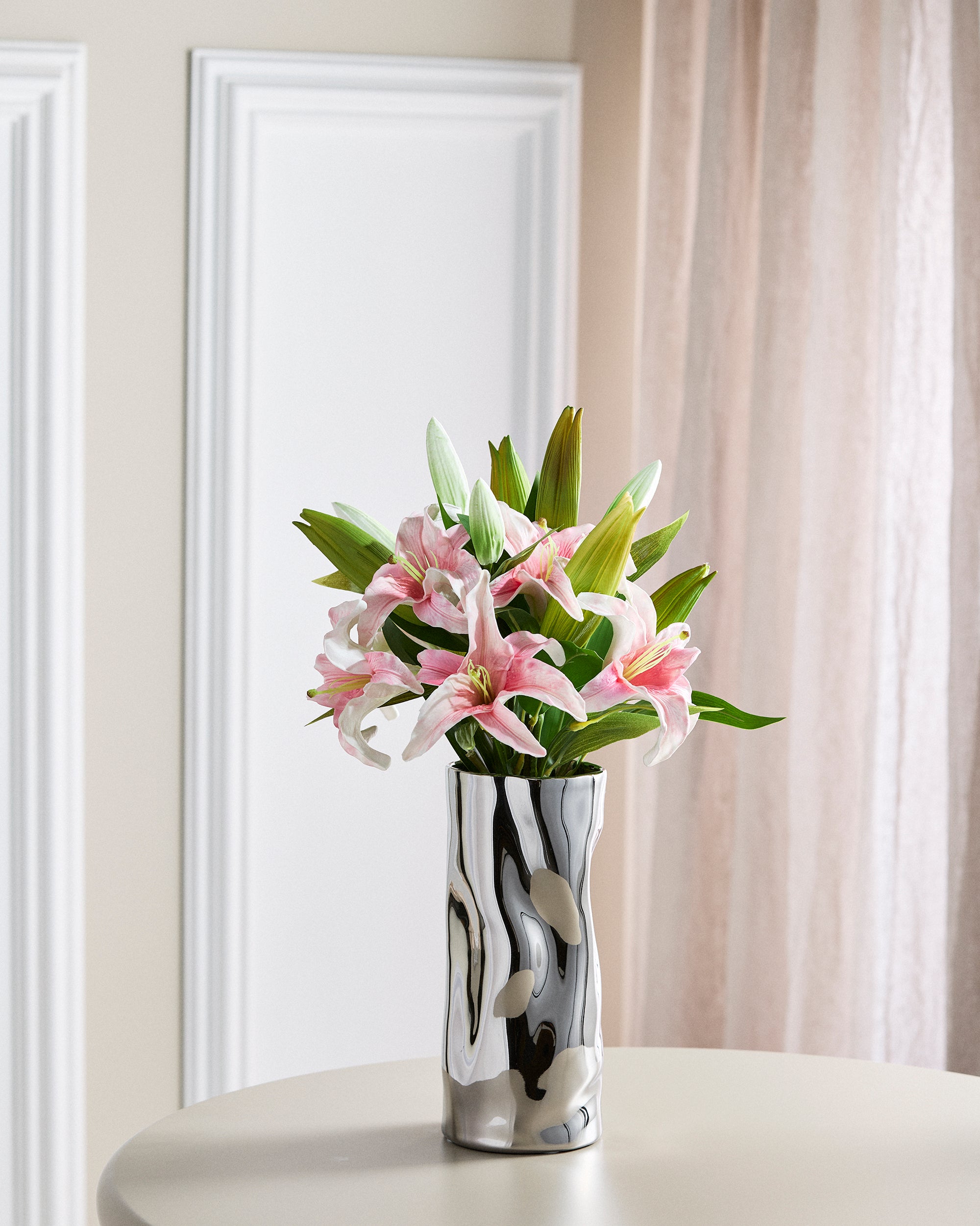 This lily bouquet is an elegant mix of open lilies and delicate lily buds, offering an authentic, natural look. The combination of blooming lilies and buds not yet in bloom creates a fresh balance, just like you'd see with fresh flowers.