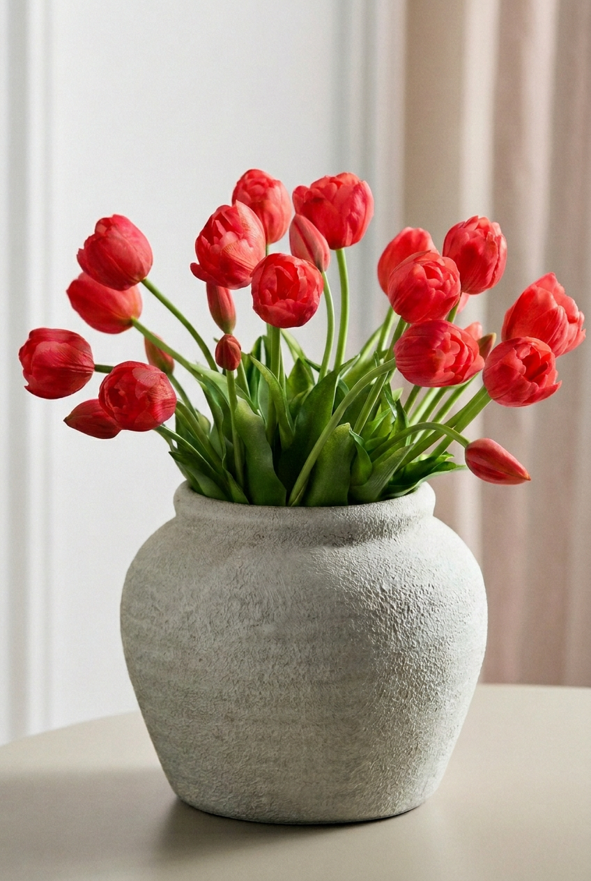 Each tulip is handcrafted in soft latex, with layered petals in delicate tones and subtle variations in shape and texture. The result is a natural richness and detail that captures the essence of real tulips – so realistic it's almost impossible to tell the difference.