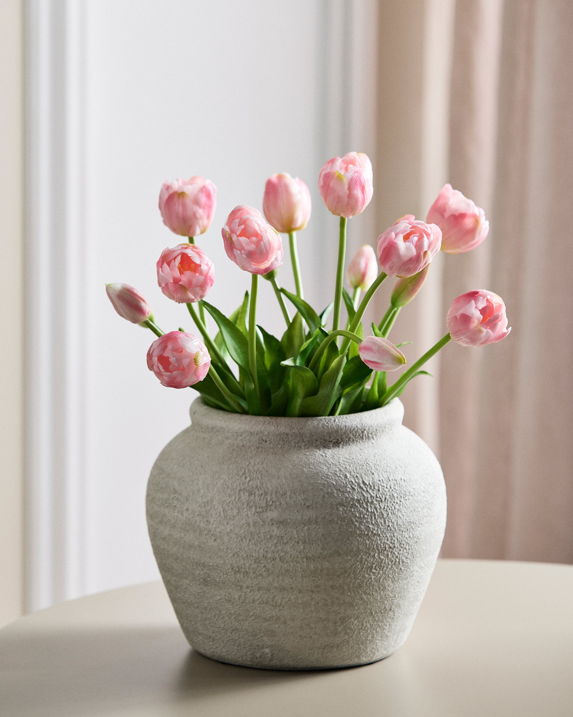 Each tulip is handcrafted in soft latex, with layered petals in delicate tones and subtle variations in shape and texture. The result is a natural richness and detail that captures the essence of real tulips – so realistic it's almost impossible to tell the difference.