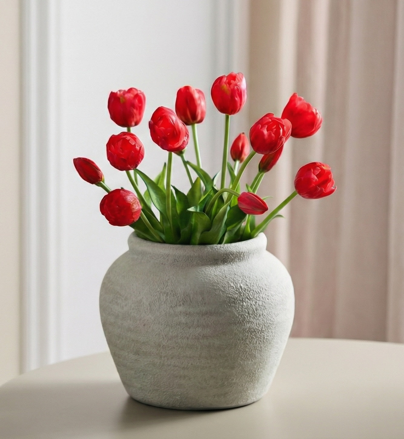 Each tulip is handcrafted in soft latex, with layered petals in delicate tones and subtle variations in shape and texture. The result is a natural richness and detail that captures the essence of real tulips – so realistic it's almost impossible to tell the difference.