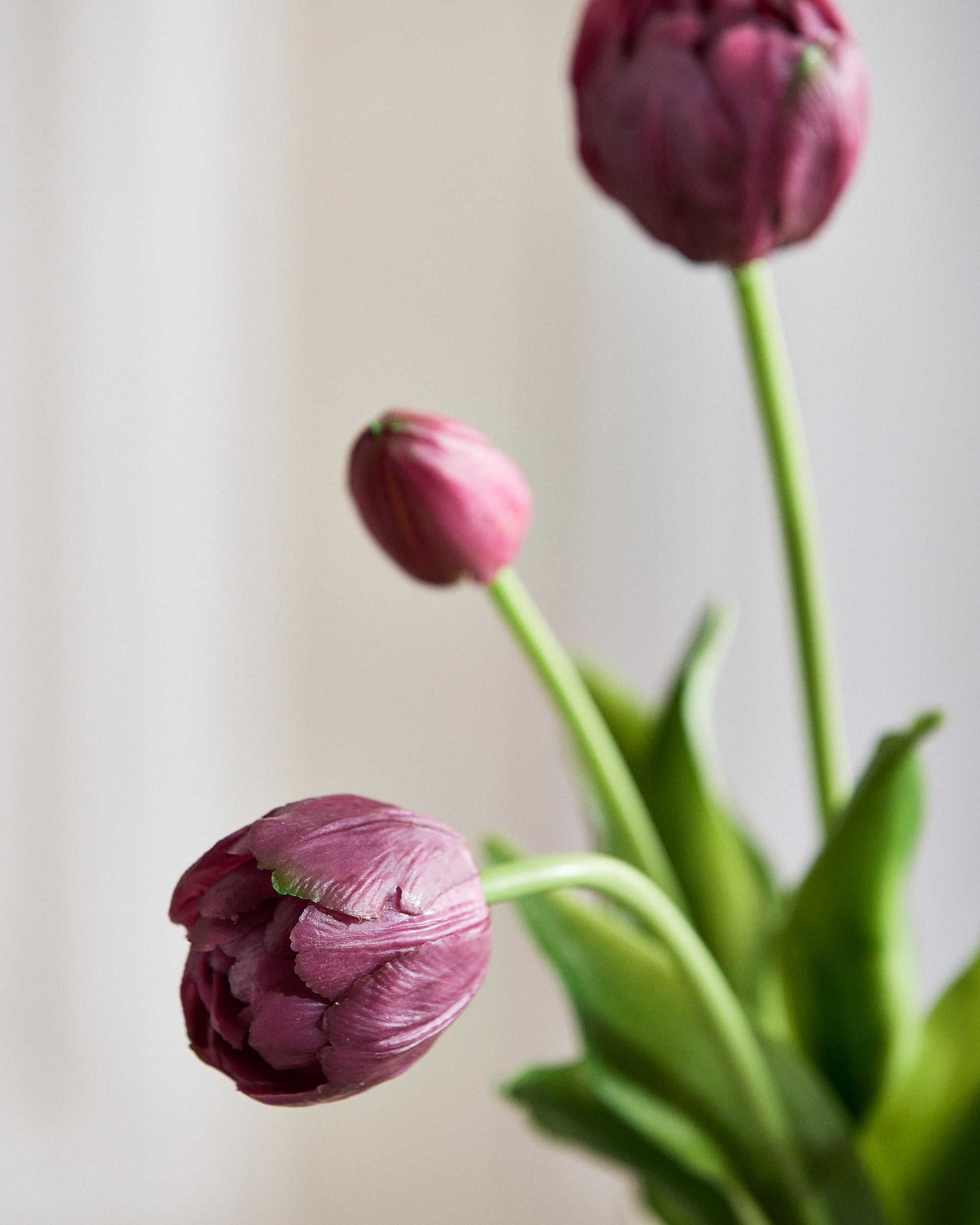 Each tulip is handcrafted in soft latex, with layered petals in delicate tones and subtle variations in shape and texture. The result is a natural richness and detail that captures the essence of real tulips – so realistic it's almost impossible to tell the difference.