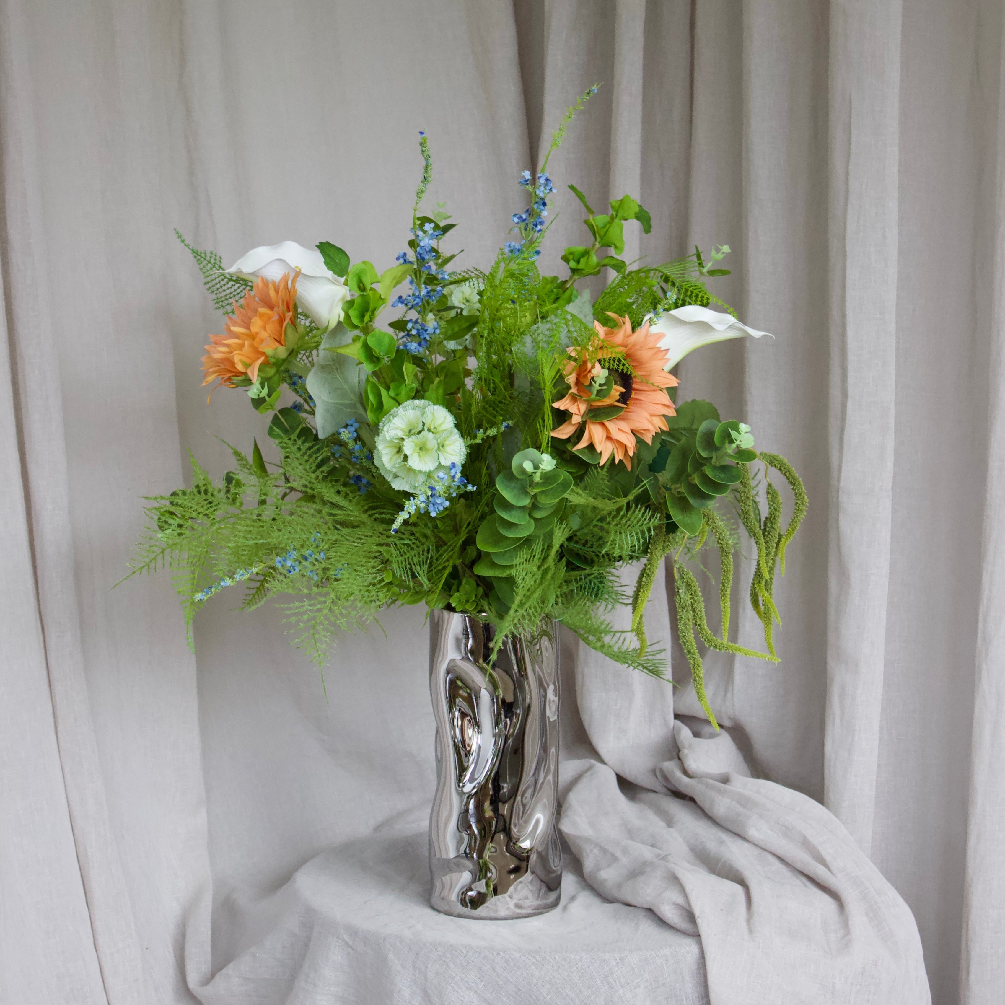 En overdådig buket, der ikke kan overses – fyldt med stærke kontraster, frodig fylde og et udtryk, der løfter ethvert rum. Den er skabt til at imponere og til at være det absolutte midtpunkt i din indretning.