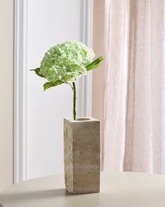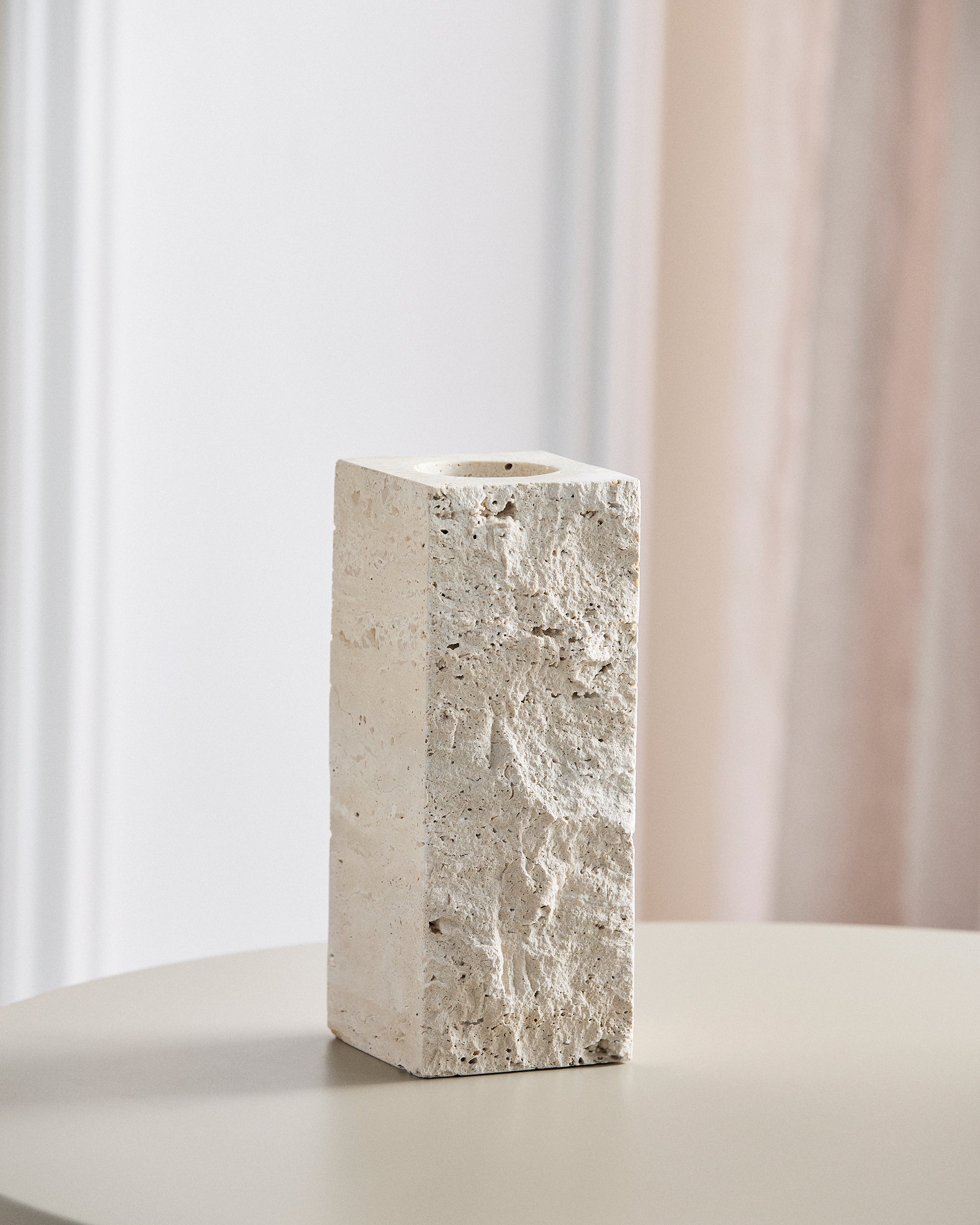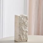 Our exclusive Onyx Vase is crafted from natural, raw travertine, blending the rugged beauty of nature with elegant design. The vase features an intriguing contrast between two raw and two smooth sides, creating a fascinating interplay of textures and surfaces that adds a unique touch to any décor.
