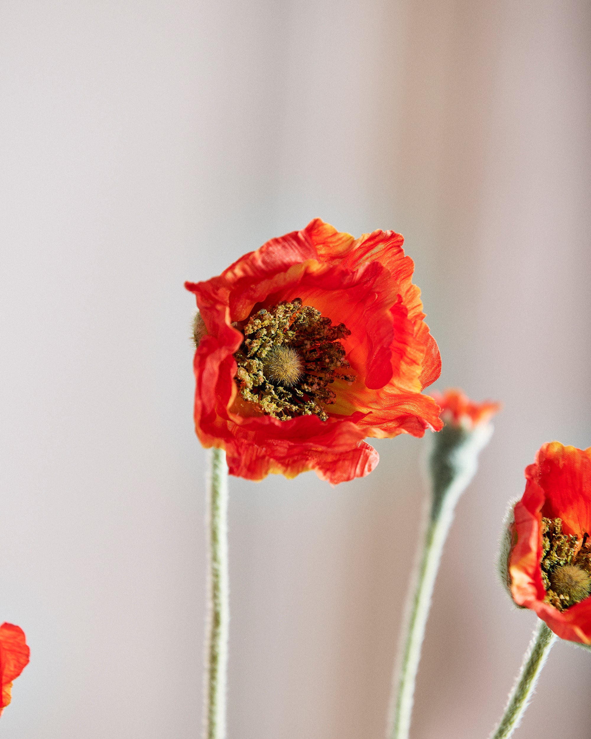 A distinctive poppy with large, crinkled petals, a dark center, and a natural curve in the stem. It differs from our classic poppy by having a larger bloom and a more striking appearance.