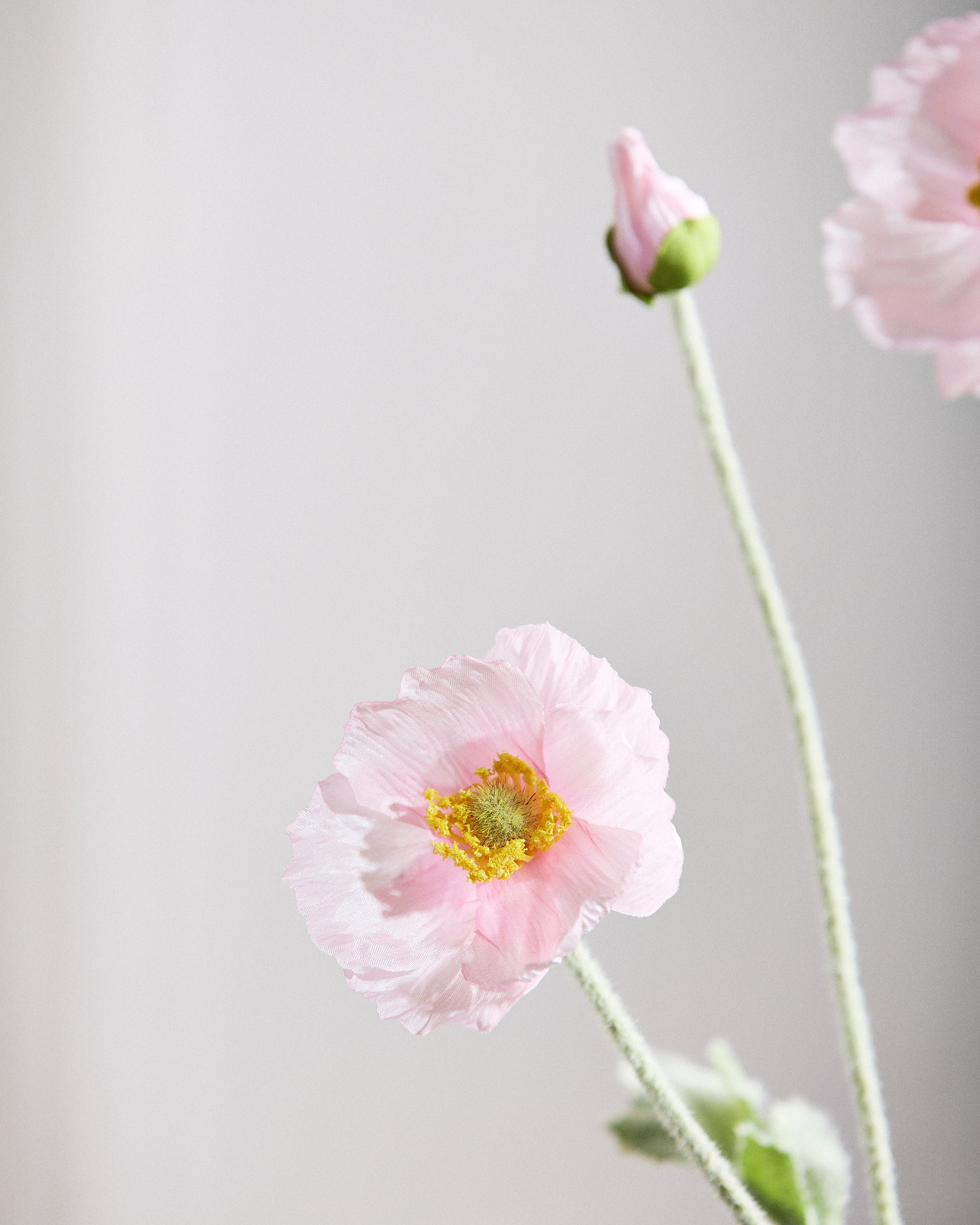The stems and leaves are carefully covered with small hairs, recreating the natural appearance of a poppy and adding an authentic dimension to their beauty.