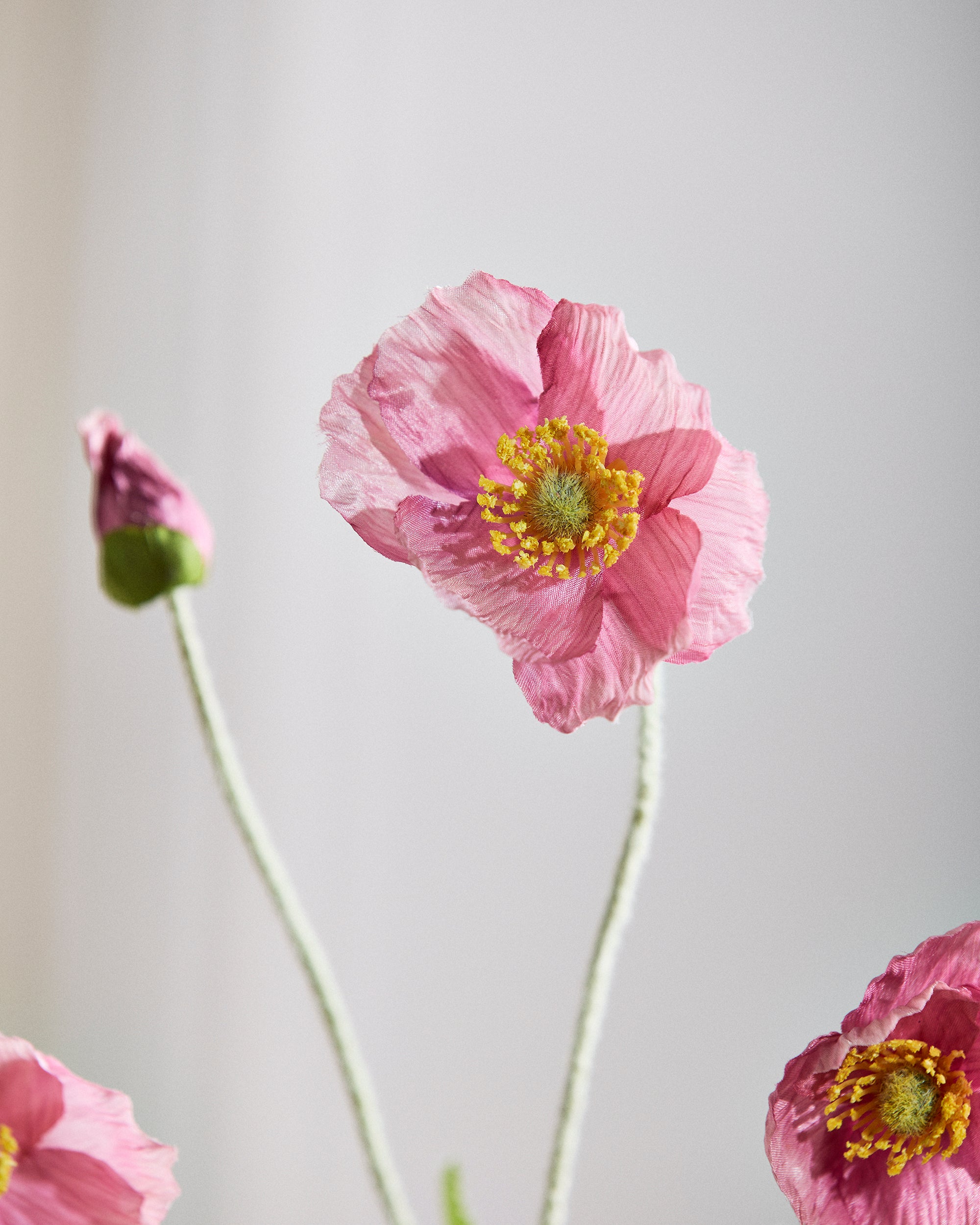 The stems and leaves are carefully covered with small hairs, recreating the natural appearance of a poppy and adding an authentic dimension to their beauty.
