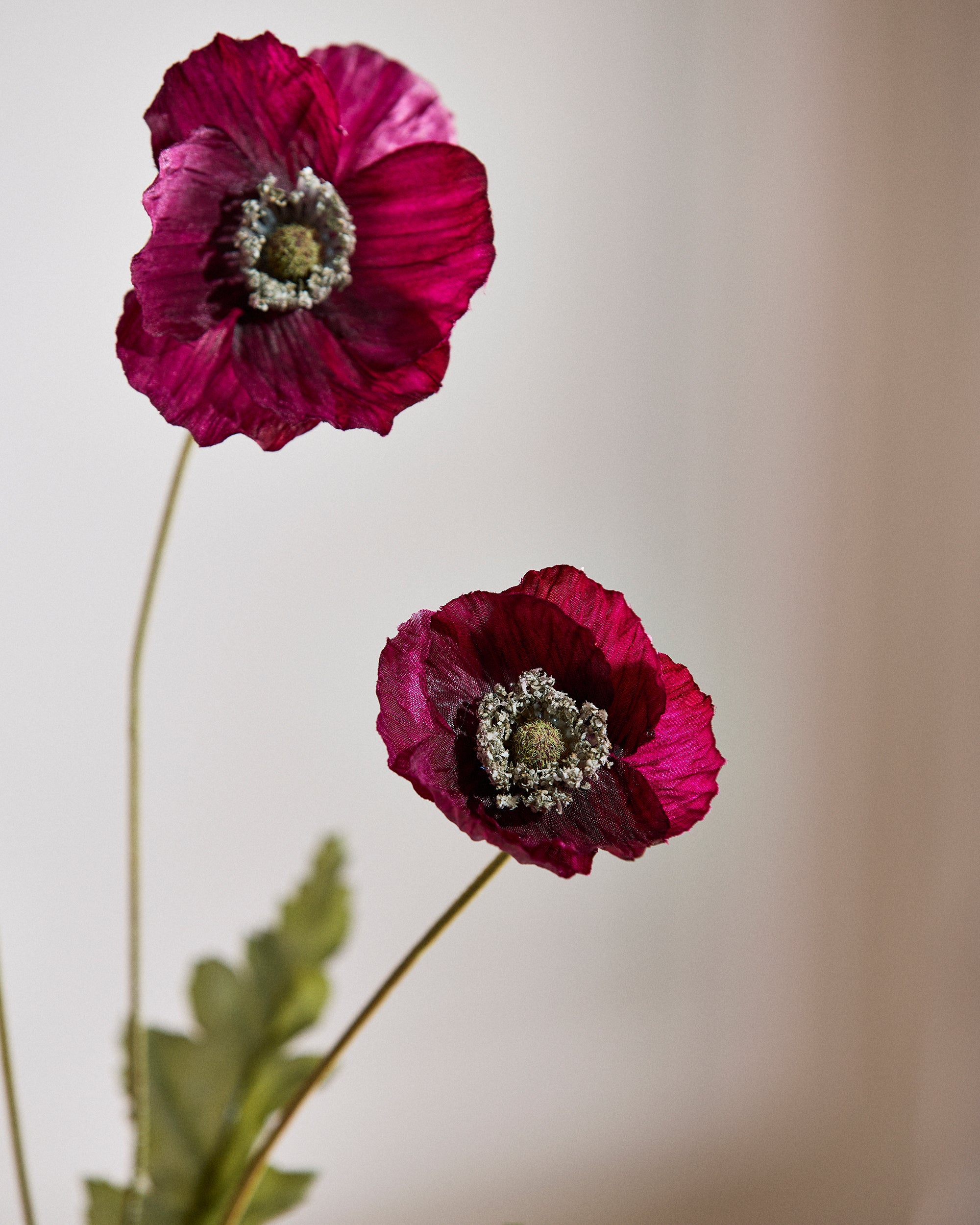 The stems and leaves are carefully covered with small hairs, recreating the natural appearance of a poppy and adding an authentic dimension to their beauty.
