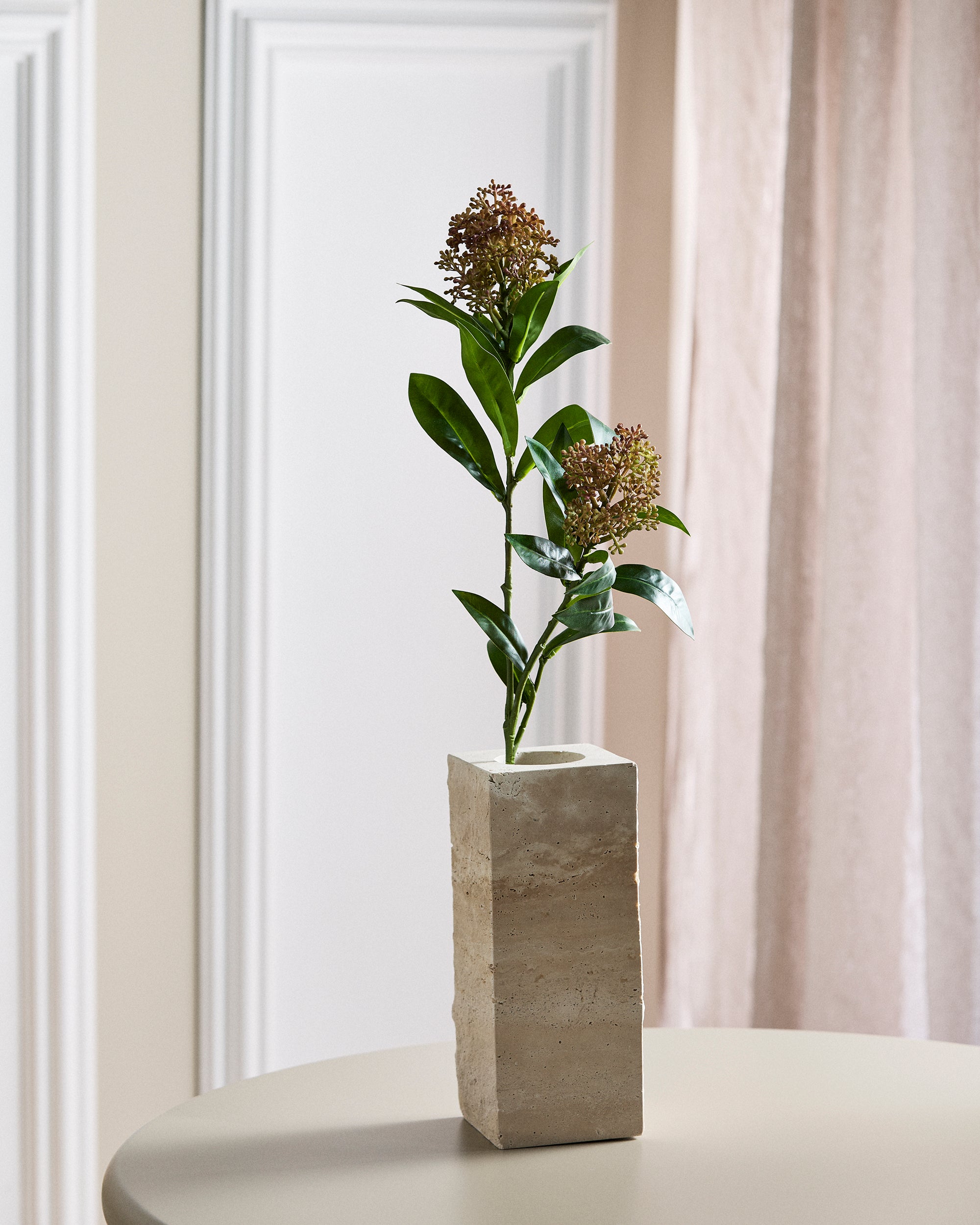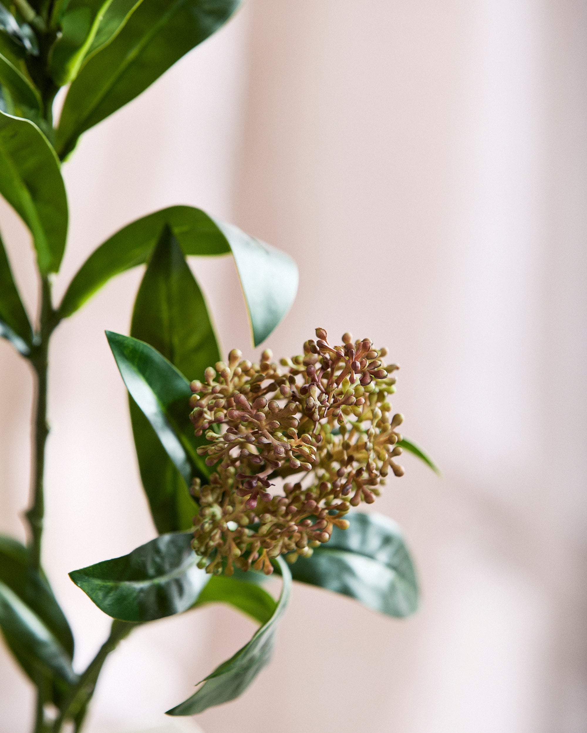 Vores kunstige Skimmia Bær Grene tilbyder den perfekte fusion af realisme og holdbarhed. Hvert bær er omhyggeligt designet til at efterligne den plumphed og farvevariation, der findes i naturen, mens bladene har autentiske teksturer og nuancer for et virkelig naturligt udseende.